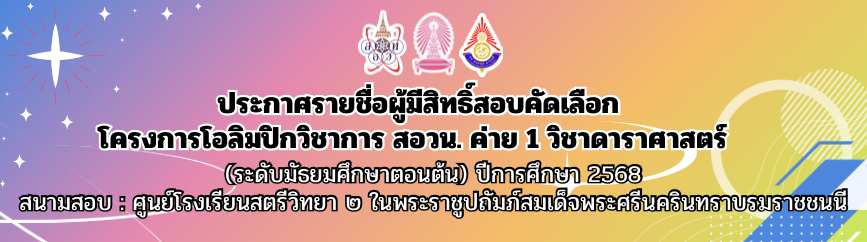 Home » ข่าวประชาสัมพันธ์ » รายชื่อผู้มีสิทธิ์สอบ โอลิมปิกวิชาการ สอวน. ค่าย 1 ดาราศาสตร์ (ระดับ ม.ต้น) ปีการศึกษา 2568 สนามสอบ ส.ว.๒