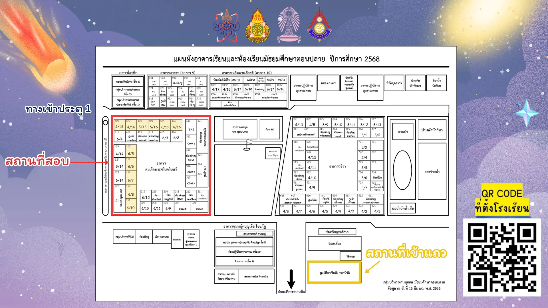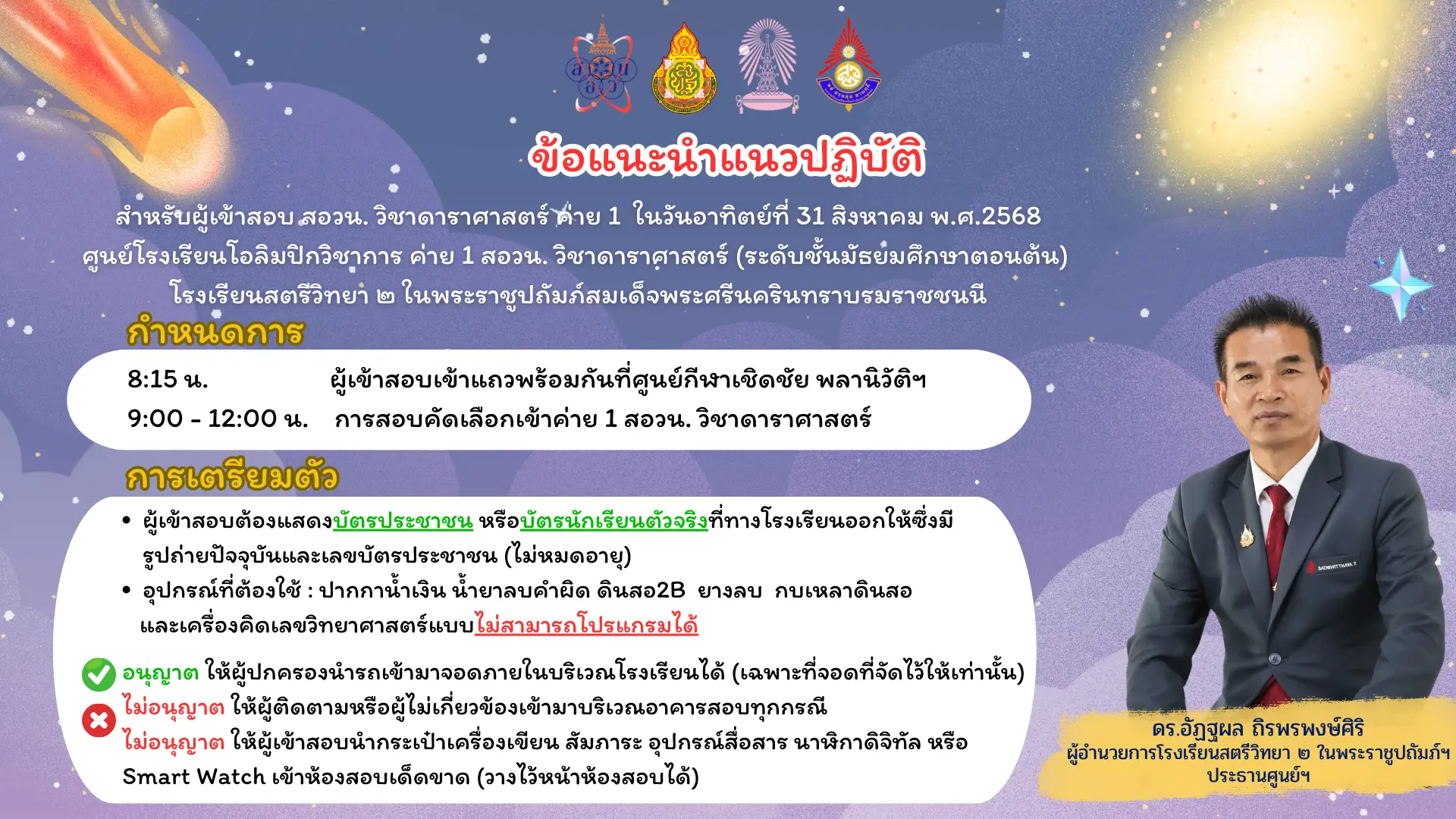 สอบวันอาทิตย์ที่ 31 สิงหาคม พ.ศ. 2568 นักเรียนเข้าแถว เวลา 08.15 น. ณ ศูนย์กีฬาเชิดชัย พลานิวัติ