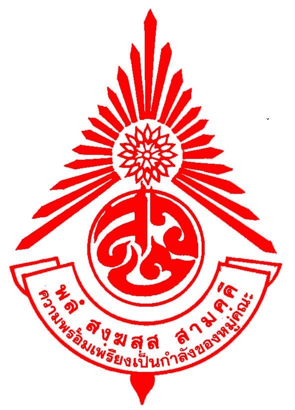ดอกพิกุลล้อมรัศมีสีแดง 21 แฉก เหนืออักษรย่อ ส.ว.๒